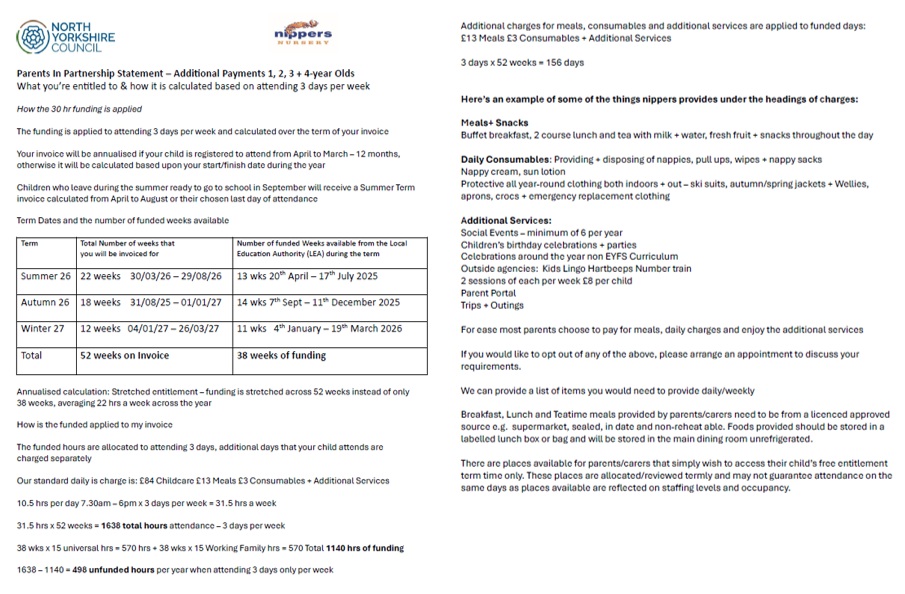 The Government funding only pays for a limited number of hours, it doesn’t pay for all the essentials and extras that makes nippers such a special place. We understand that most families want continuity of provision all year round and so we’ll ask you to pay for these essential and extras along with the rest of your non funded hours.